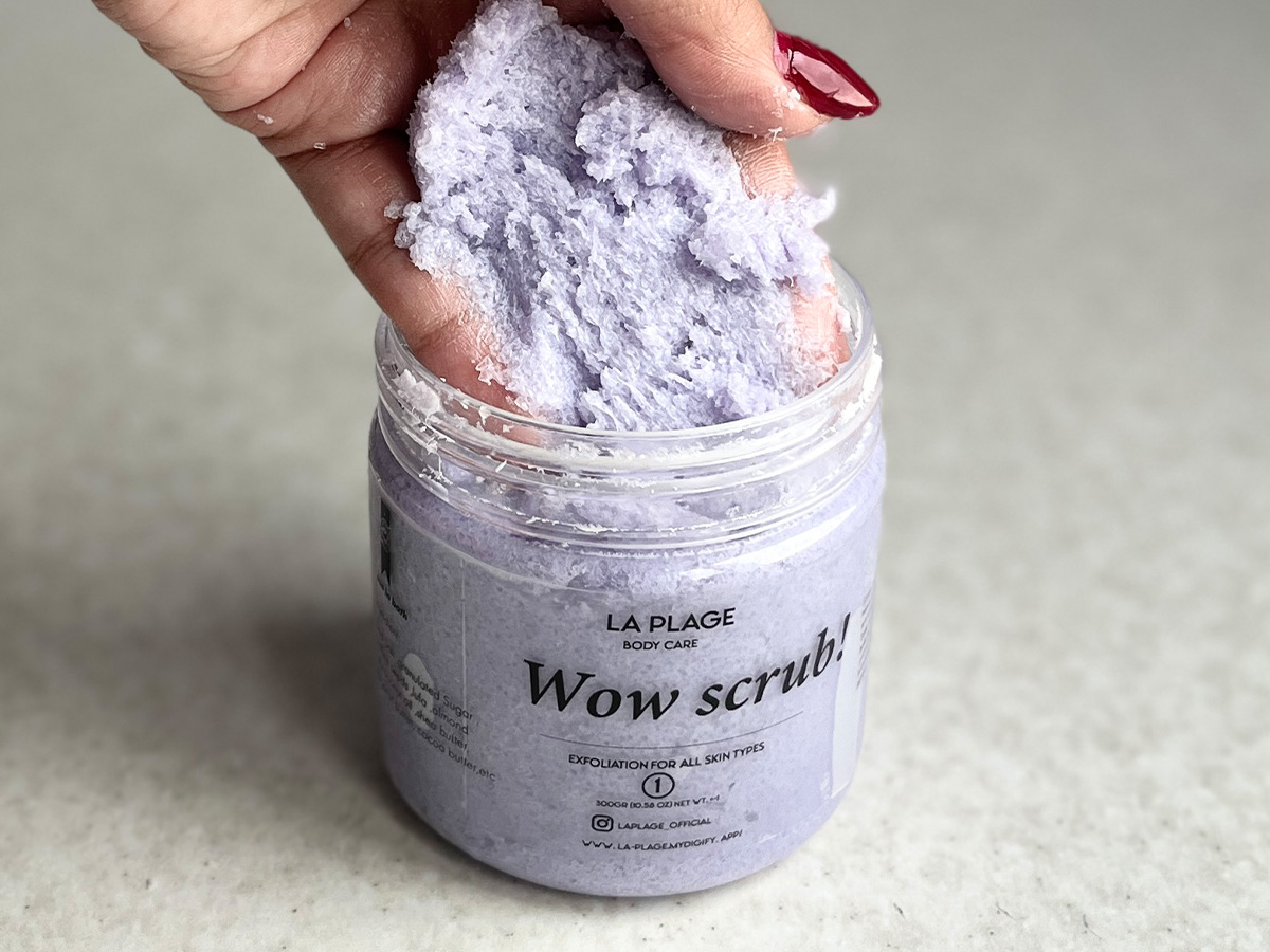 1. آماده‌سازی پوست: برای اینکه بهترین نتیجه را از این اسکراب بگیرید، پوست خود را تحت دوش مرطوب کنید و کمی گرم نمایید. خلق یک فضای آرام و دلپذیر می‌تواند به افزایش اثرگذاری اسکراب کمک کند.